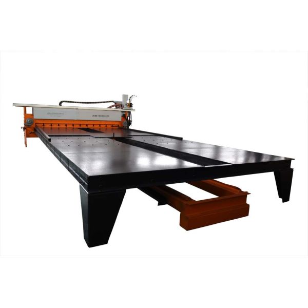 The JH-500 TWear Resistant Overlay Steel Plate Welding Machine is a new generation of the table type overlay welding machine developed by our company, which is functioned by the high performance PLC + digital system for its control system, the TECO servo precision system control for its pallet displacement, the latest TECO JSPD servo system control technology for its wire control, the horizontal double driving guides + code mode of feed control for its ejector plate feeding displacement of parent metals, and the SAMSR driver + OPG motor control for its powder dropping in which the precision of wire feeding and powder dropping is enabled within ±1.0g. The hydraulic pressure of the system adopts the analog quantity to control its automatic pressure circulation of setting values to improve the pressure control accuracy up to an range of 0.15%, which controls the welding torch within compound swing of 10-48mm for welding, and cools the welding torch head by circulating cooling water constant pressure cooling while cooling the parent metals by variable frequency water pressure circulating, avoiding the deformation of the base metal due to the overheat in the welding process.
